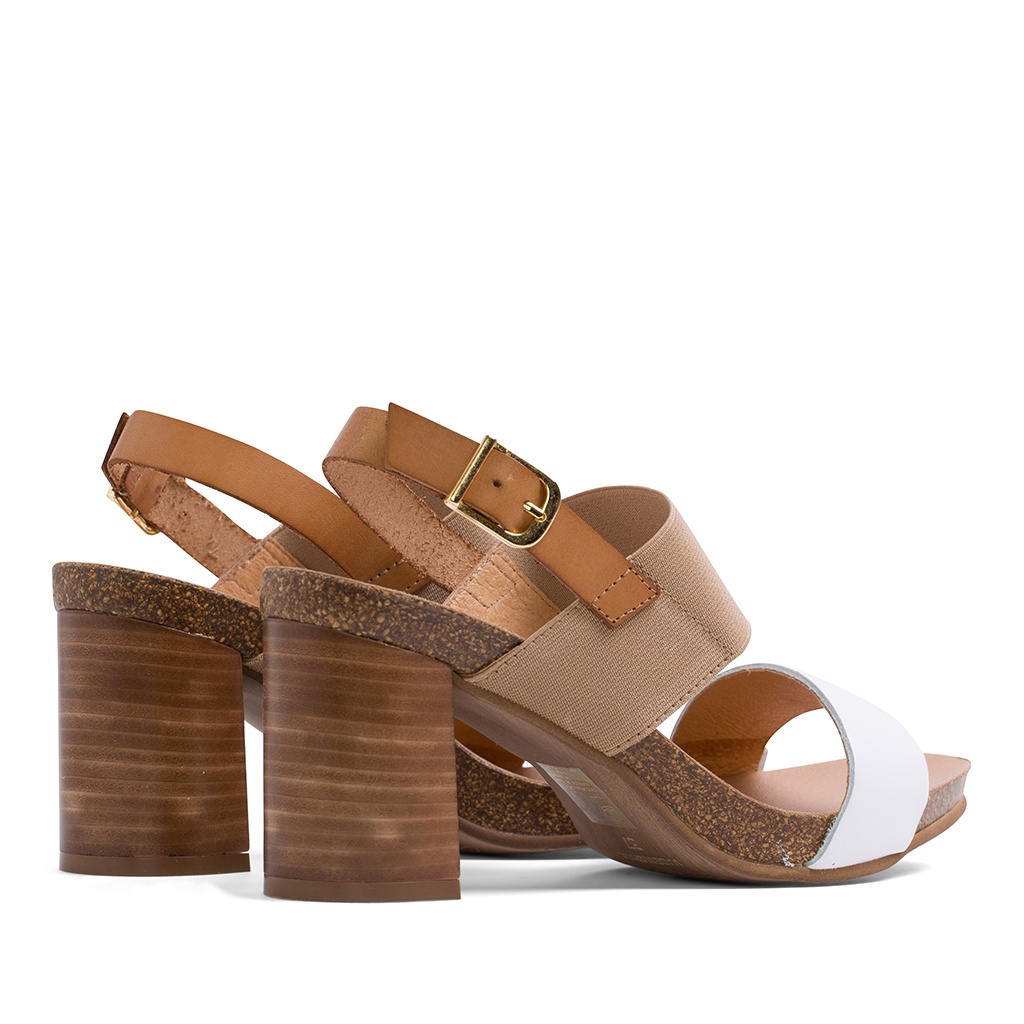 Penelope 真皮一字寬帶粗跟涼鞋-白