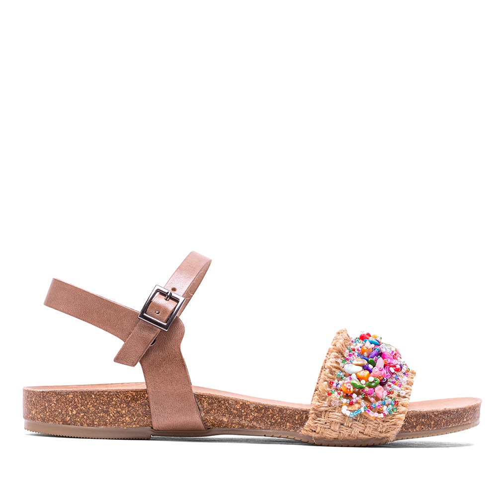 PORRONET 繽紛珠飾繞帶厚底涼鞋-奶茶棕