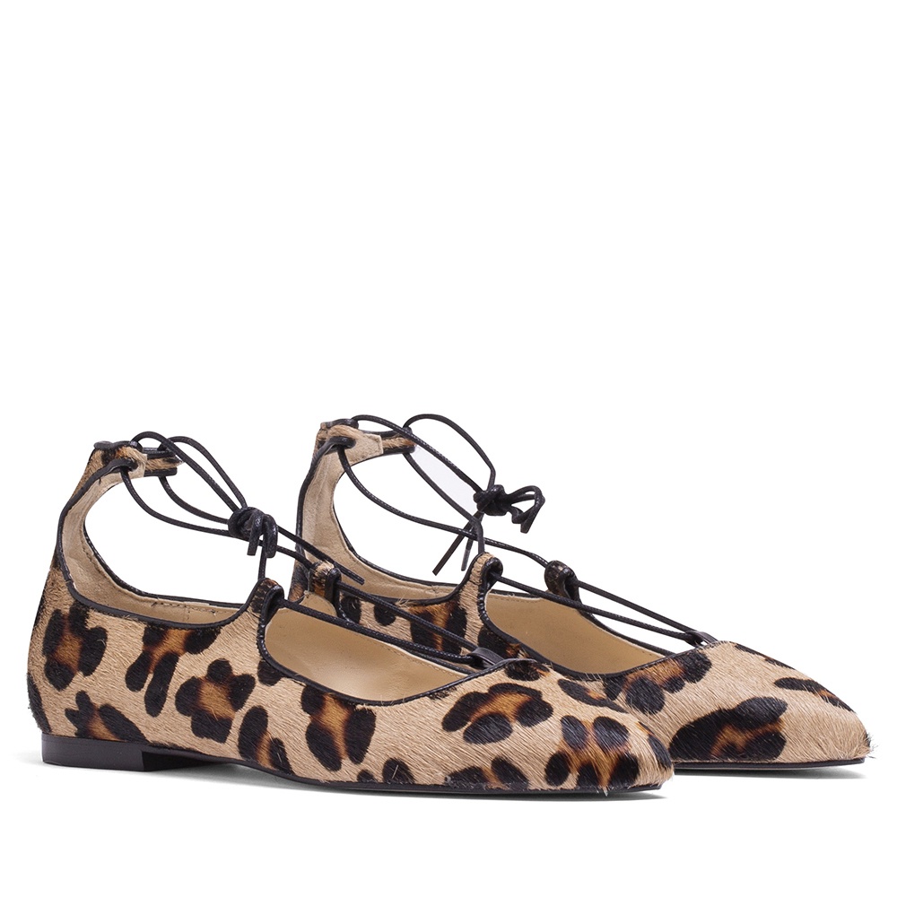 MISWEAR 真皮豹紋芭蕾綁帶鞋