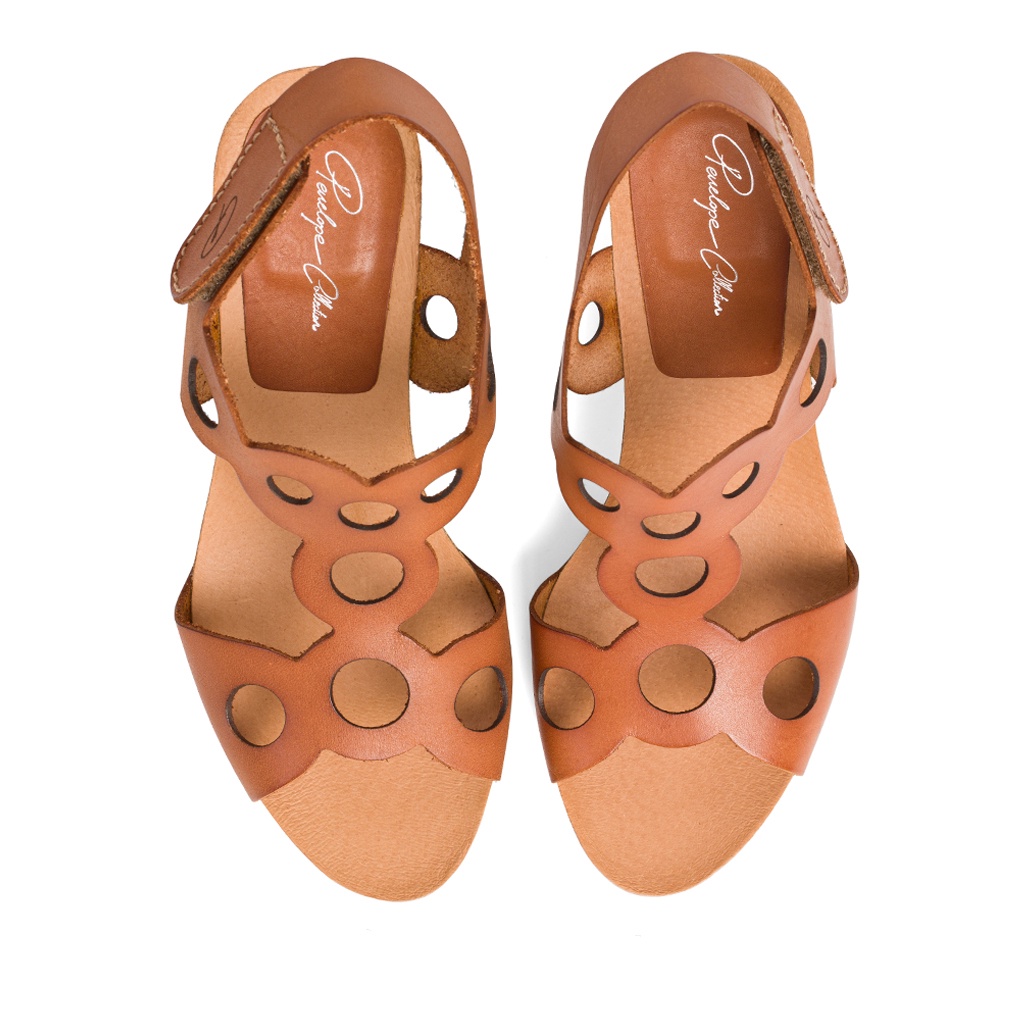 Penelope 真皮鏤空黏貼高跟涼鞋-棕