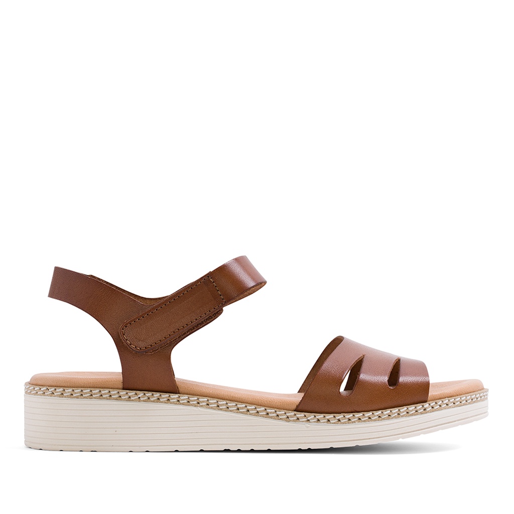 MISWEAR 真皮鏤空黏貼厚底涼鞋-棕