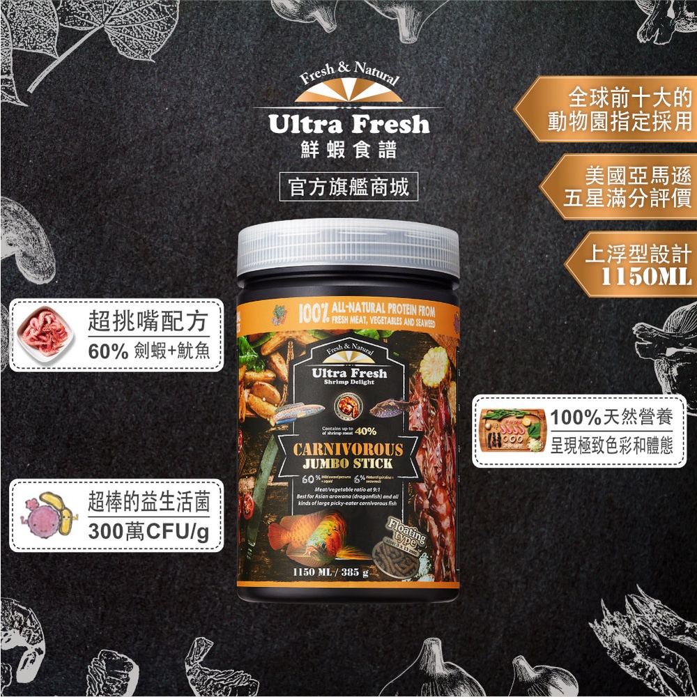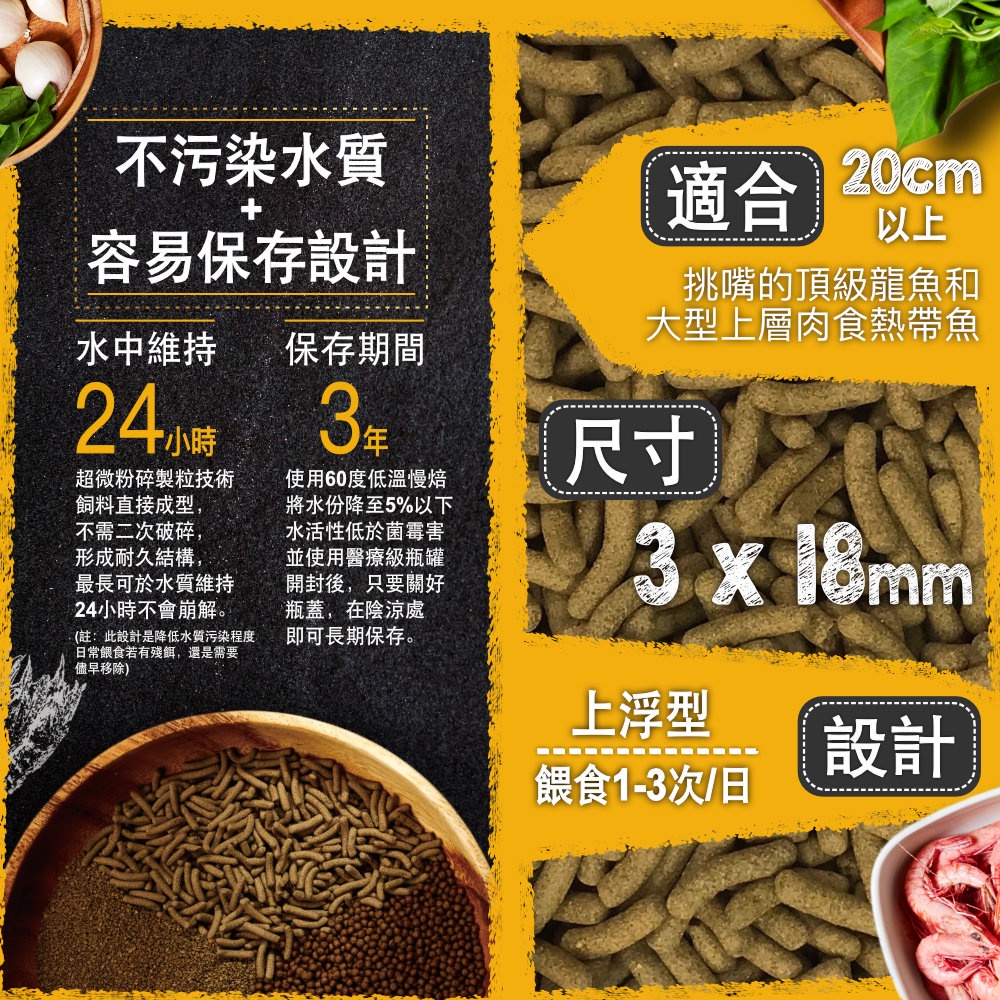 【 鮮蝦食譜 】 頂級 龍魚 大型魚 肉食魚 全天然蛋白魷魚大蒜鮮蝦棒 上浮型 紅龍 金龍 雷龍 龍魚飼料