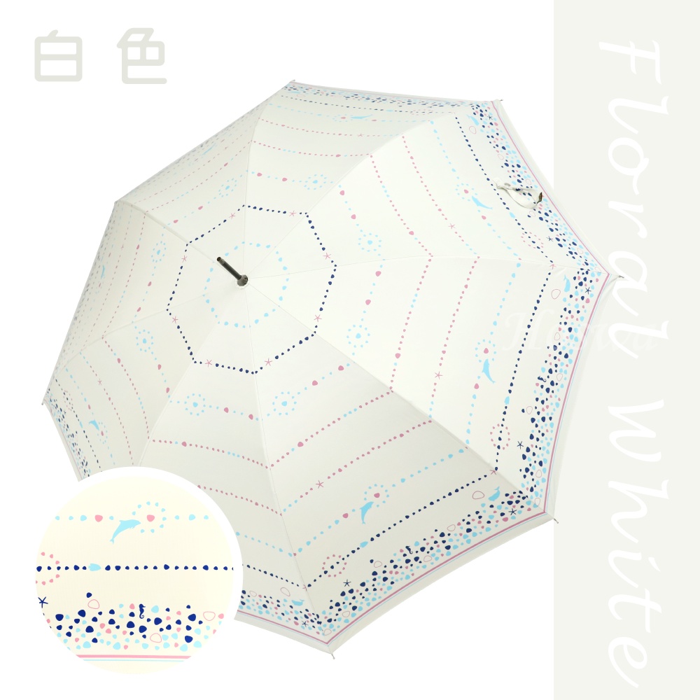 【Hoswa雨洋傘】奇幻海洋自動直傘 全遮光黑膠 極降溫防曬抗UV 台灣品牌設計款/非 反向傘<日本風現貨白色>