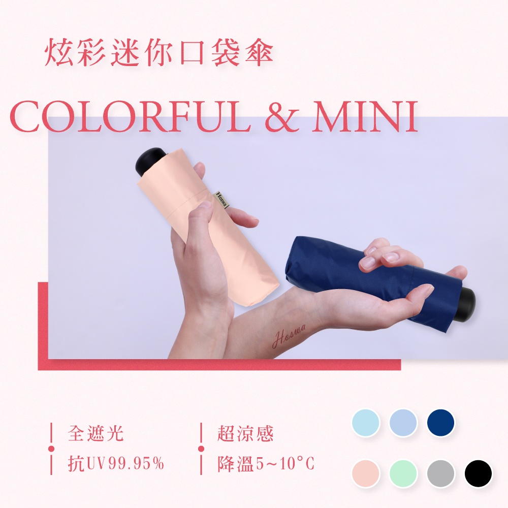 【Hoswa雨洋傘】炫彩迷你五折口袋傘/折疊傘 雨傘 陽傘 防曬抗UV 防風 黑膠降溫5~10°C│台灣雨傘品牌現貨灰色