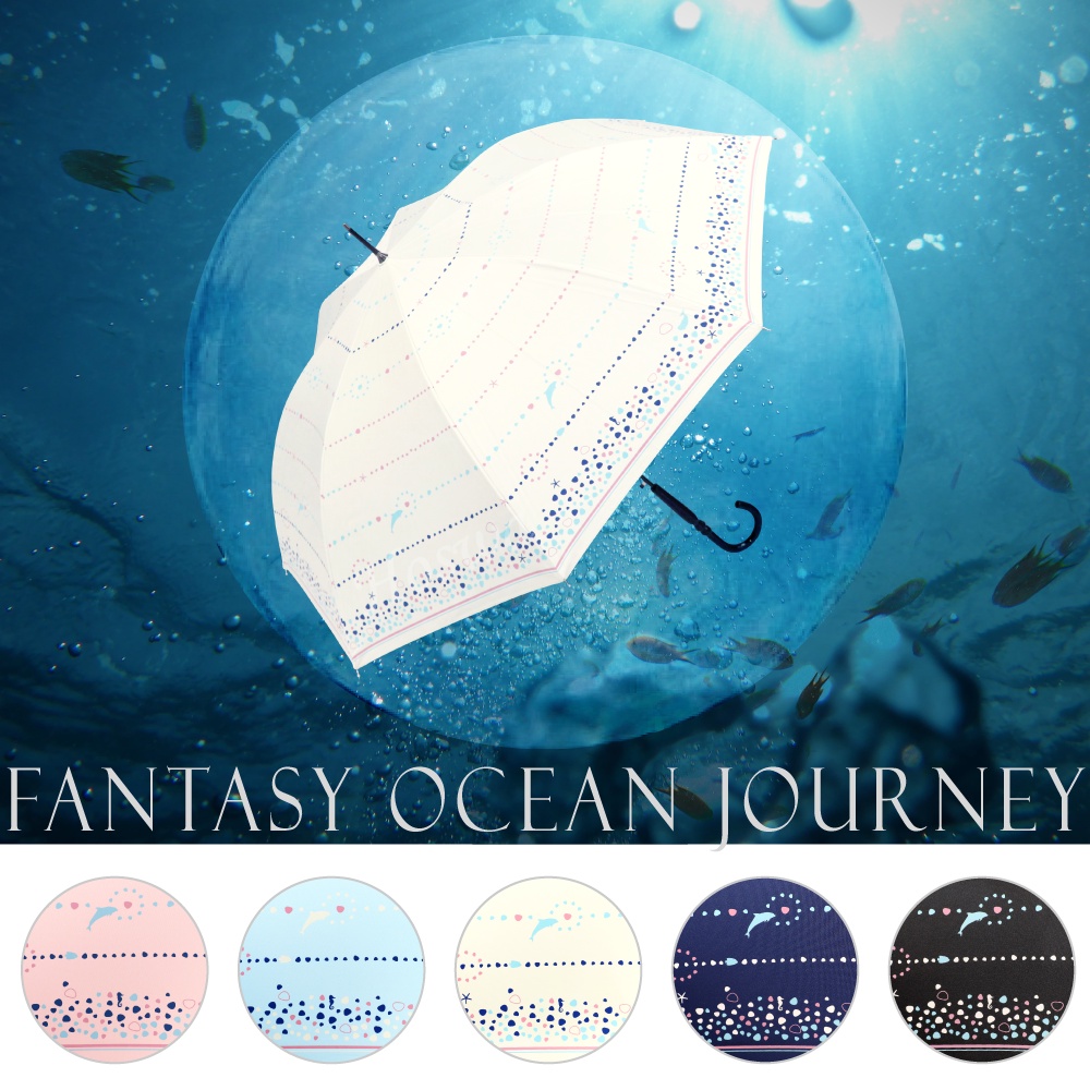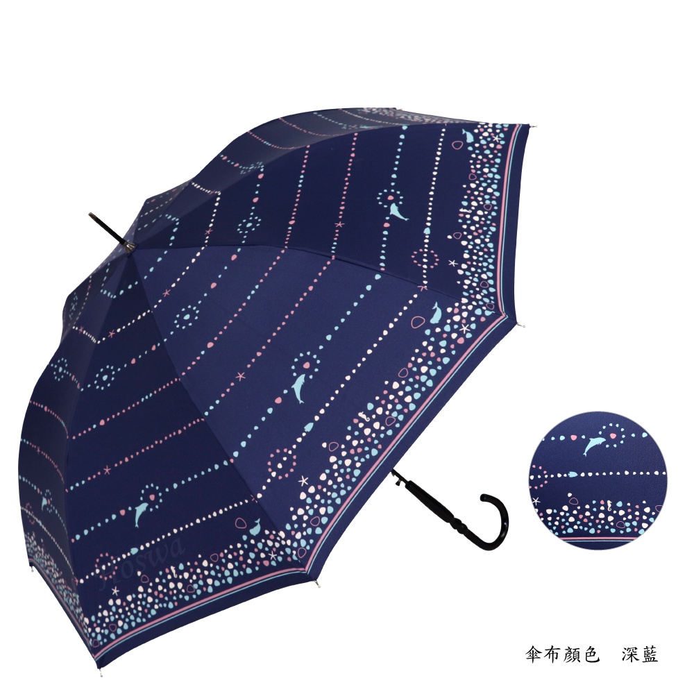 【Hoswa雨洋傘】奇幻海洋自動直傘 全遮光黑膠 極降溫防曬抗UV 台灣品牌設計款/非 反向傘<日本風現貨深藍>