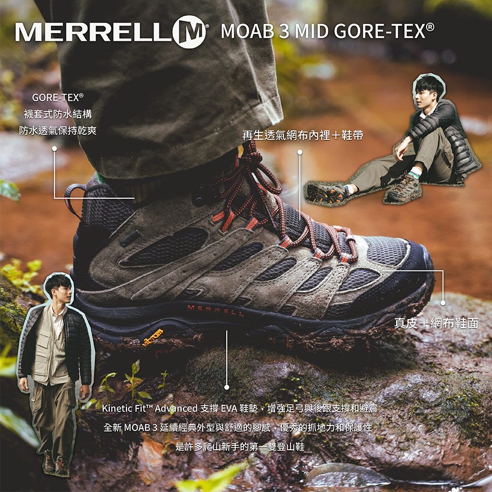 MERRELL(男)MOAB 3 MID GORE-TEX防水登山中筒鞋 男鞋-黑(另有灰咖)