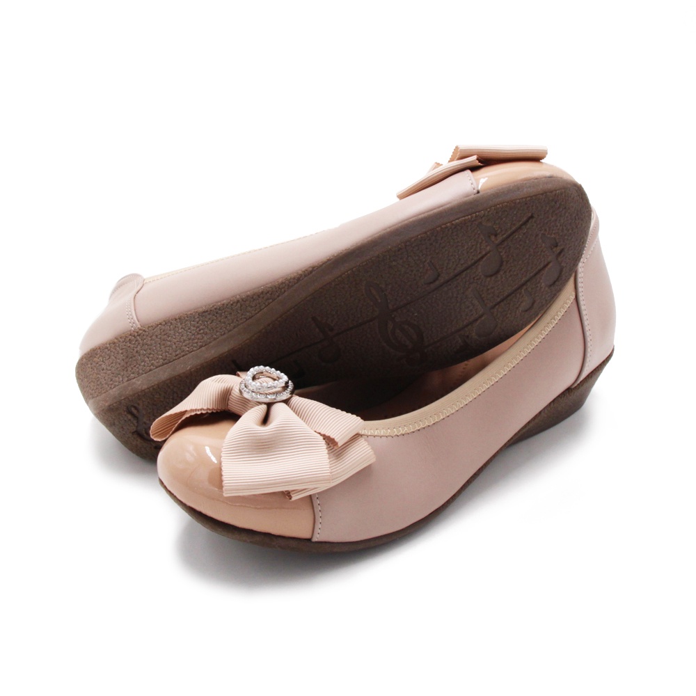 W&M (女)氣質閃鑽雙圈蝴蝶結護踝真皮娃娃鞋-杏(另有黑)