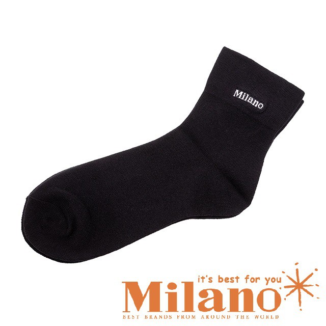Milano 電繡LOGO 寬口純棉紳士襪- (黑色)