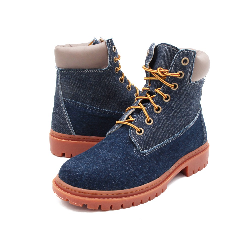 WALKING ZONE(女)經典牛仔玩色款 7孔高筒鞋靴 女鞋-牛仔藍