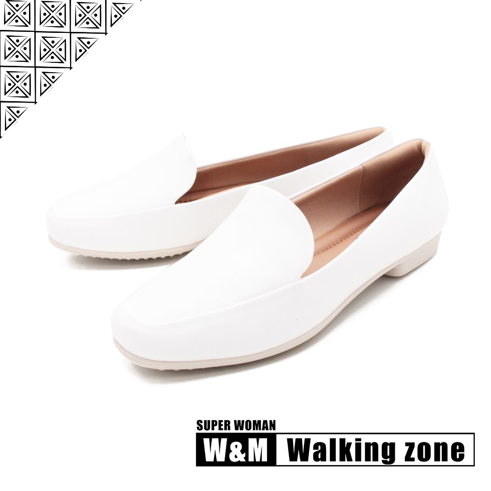 WALKING ZONE SUPER WOMAN系列 百搭方頭平底樂福鞋 女鞋-白(另有卡其.黑)