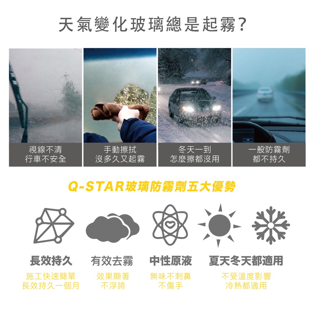 Q-STAR 汽車美容 汽車玻璃防霧劑150ml 有效去霧長效持久 行車更安全