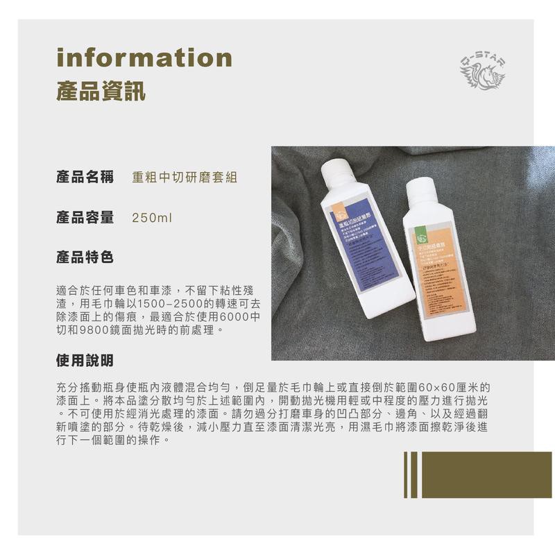 Q-STAR 汽車美容研磨系列 1號重粗切削研磨劑+中切削研磨劑各220ml