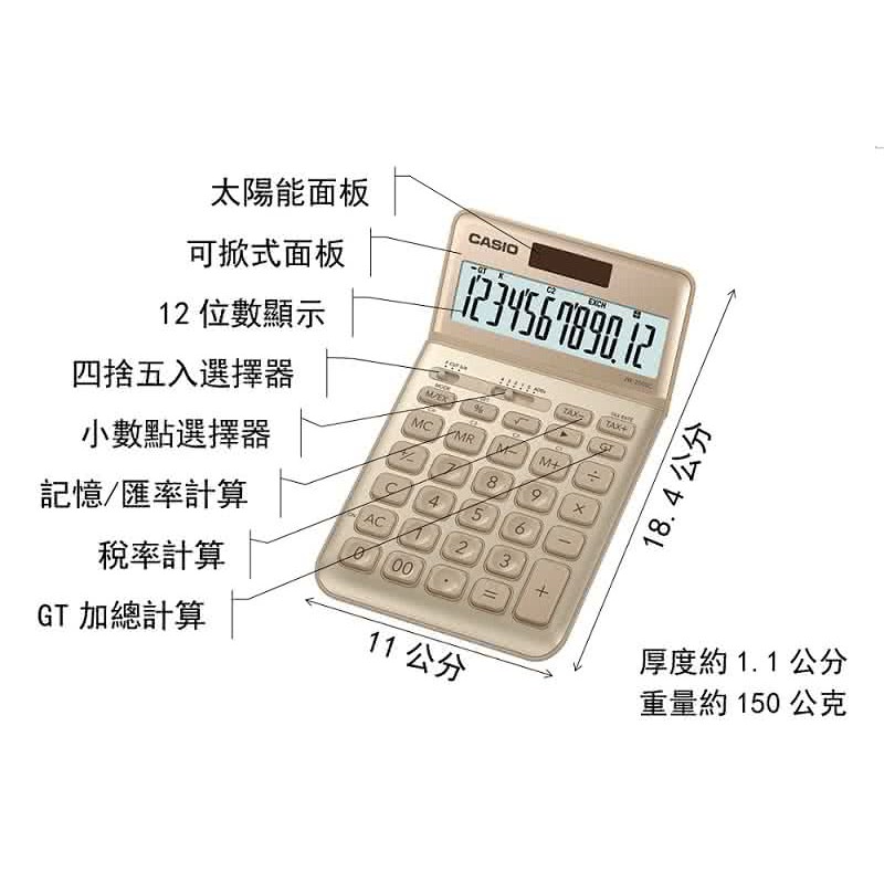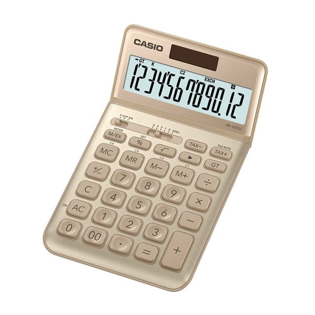 【CASIO卡西歐】12位數香檳系列計算機/JW-200SC-GD