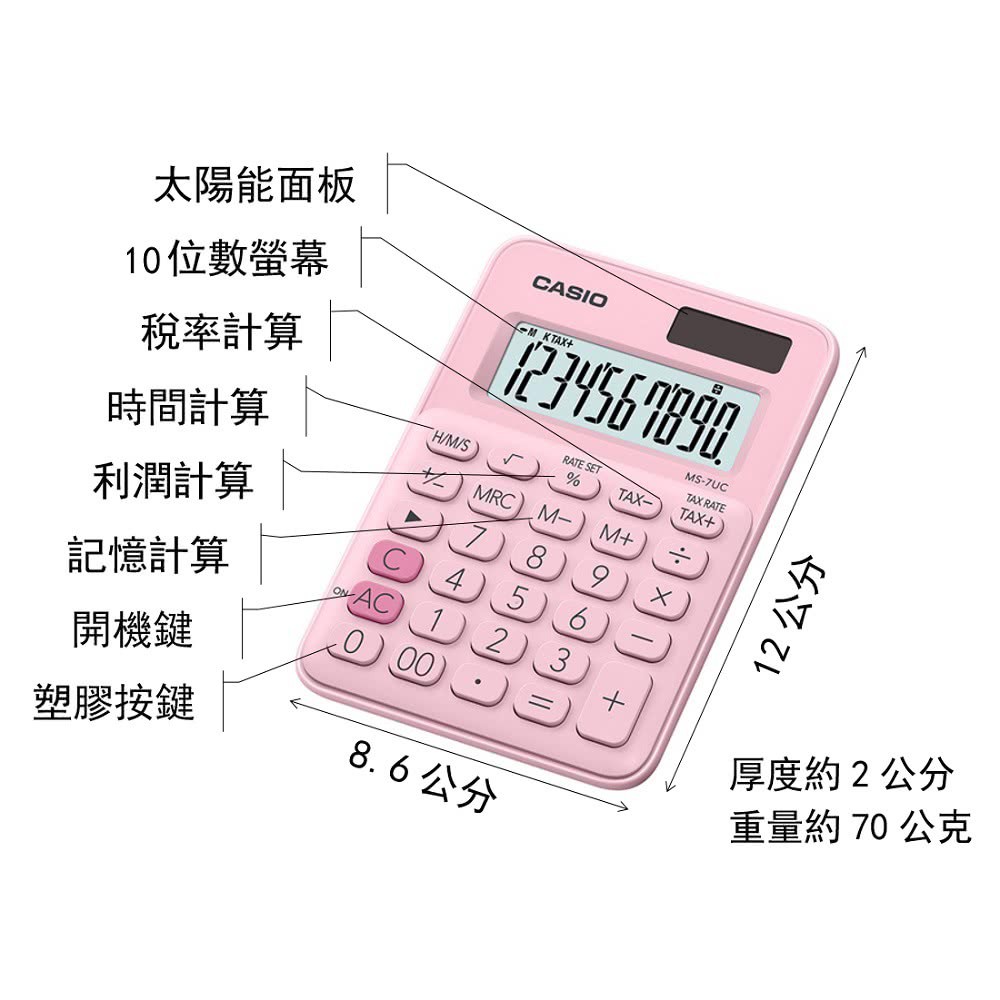 【CASIO卡西歐】10位數繽紛馬卡龍系列計算機/MS-7UC-PK