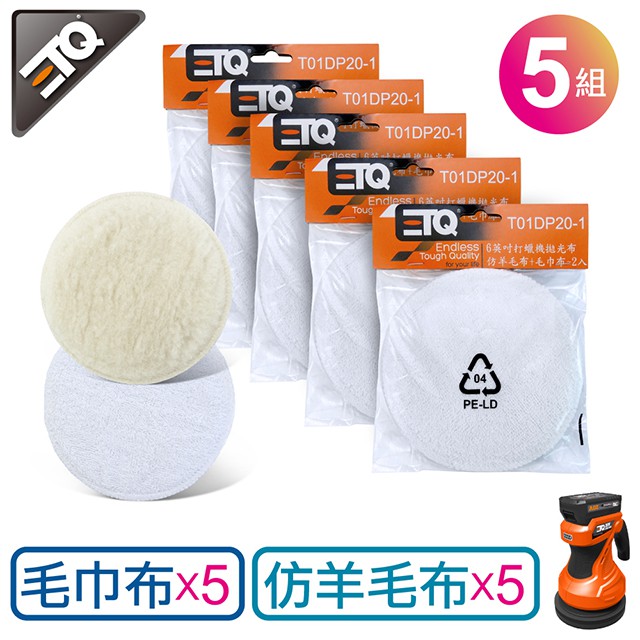 【ETQ USA】6英吋打蠟機拋光布5件組/每件內含仿羊毛布1入+毛巾布1入|ETQ旗艦店