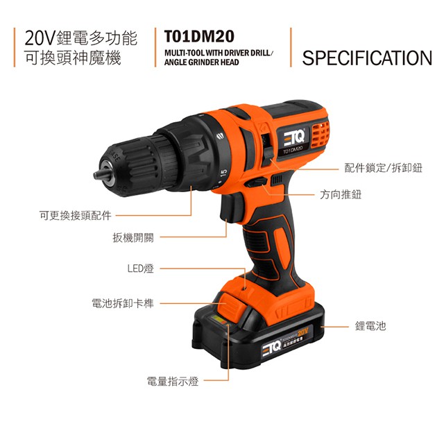 【ETQ USA】20V鋰電多功能可換頭神魔機/台灣現貨/交換禮物/年末大掃除|ETQ旗艦店
