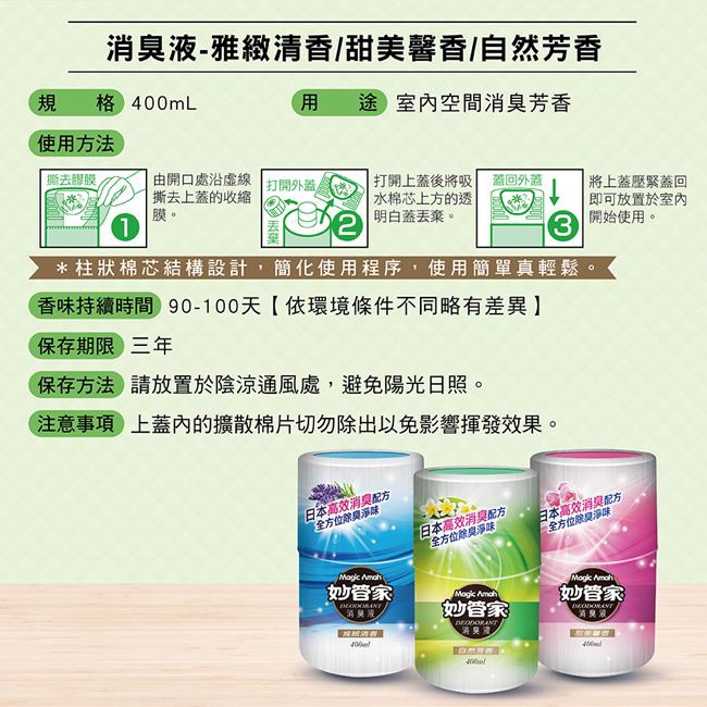 【妙管家】消臭液400ml(2入) 自然芳香 雅緻清香 甜美馨香 (均一價199)