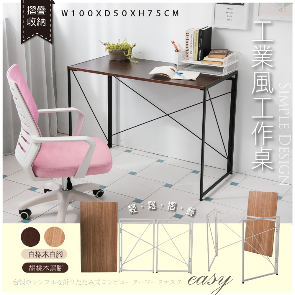 STYLE格調|可折合收納工業風書桌【DE-016】工作桌 辦公桌 電腦桌 洽談桌 書桌 畫桌 置物桌【現貨免運】