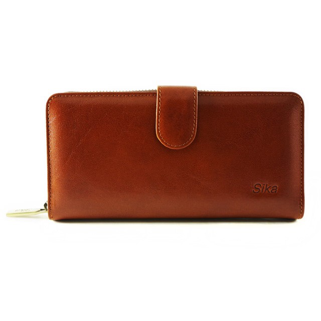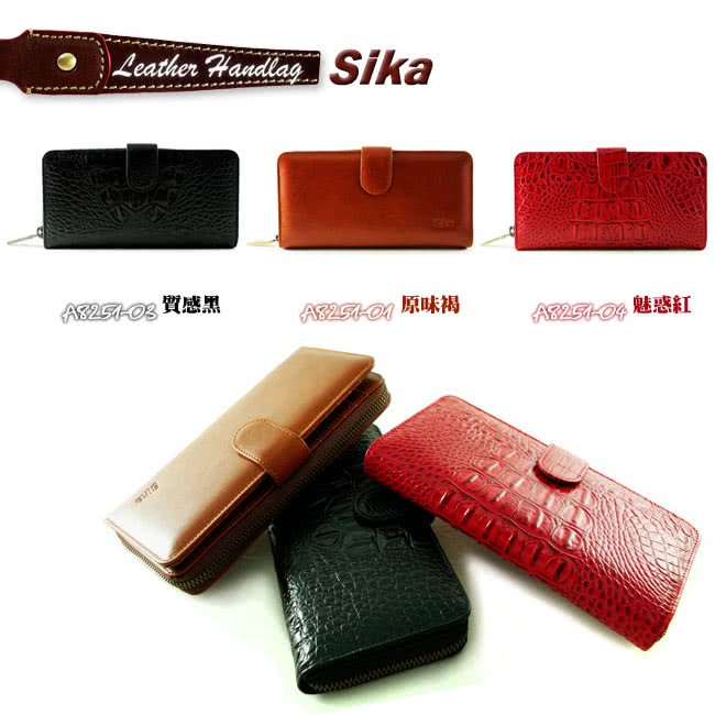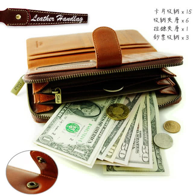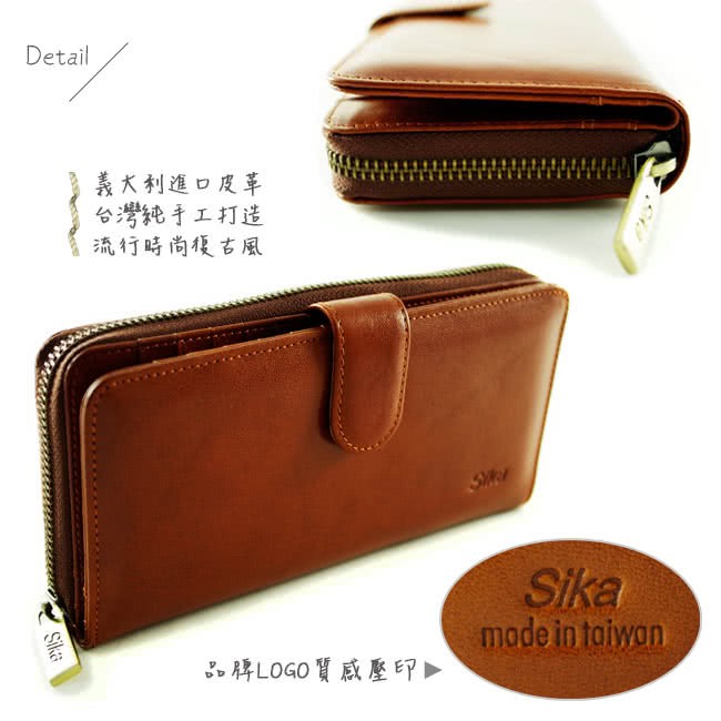 【Sika】 【台製】義大利時尚真皮壓扣拉鍊多卡長夾A8251-01(原味褐) 【全館免運】