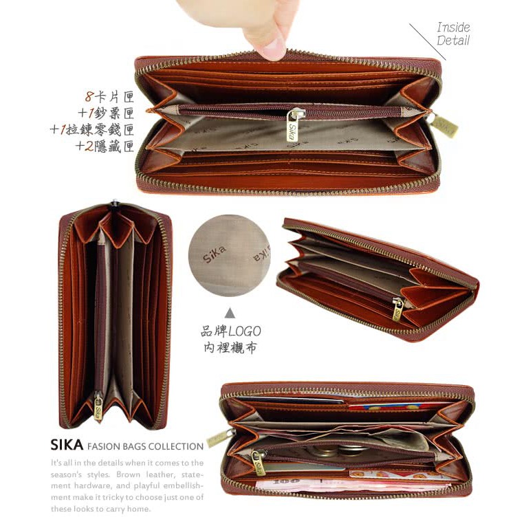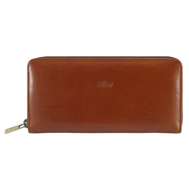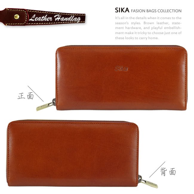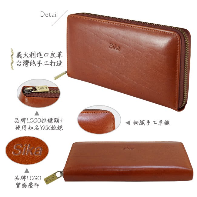 【Sika】義大利時尚真皮拉鍊式長夾(A8236-01原味褐)
