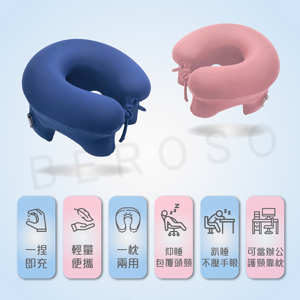 Beroso 倍麗森 充氣舒壓辦公旅行護頸枕-兩色任選B59 護頸枕 旅行枕 趴睡枕 飛機枕 午睡枕 旅遊神器