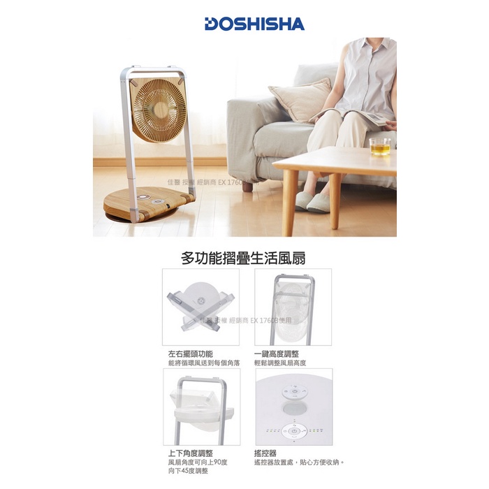 [福利品]日本DOSHISHA 摺疊風扇 FLS-252D NWD/佳醫原廠/現貨免運
