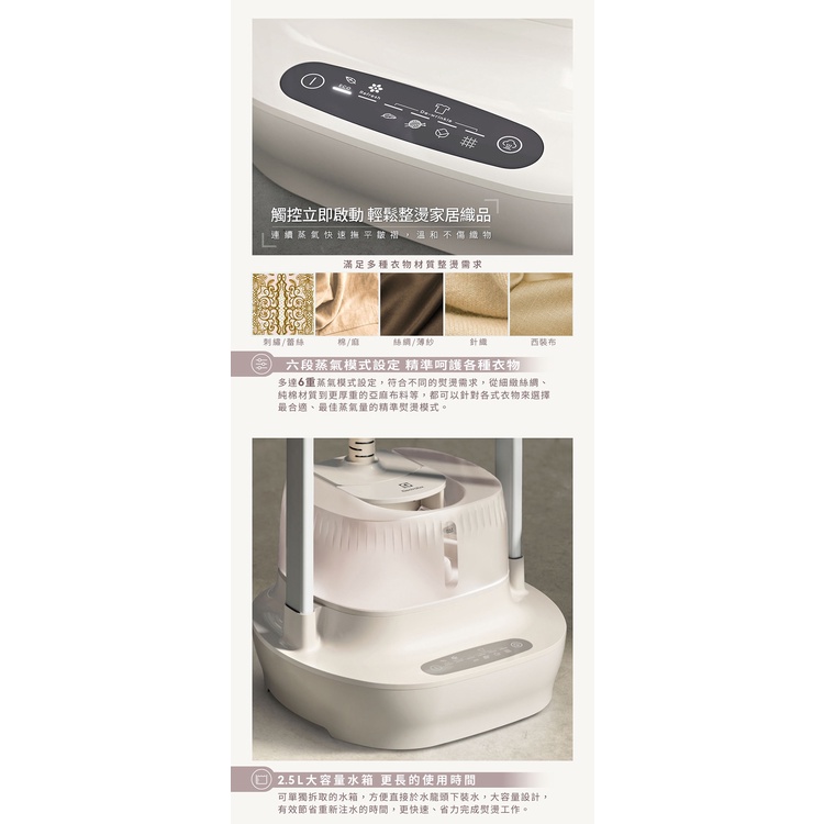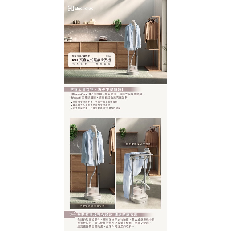Electrolux伊萊克斯 直立式蒸氣掛燙機E7GS1-74OW燕麥白