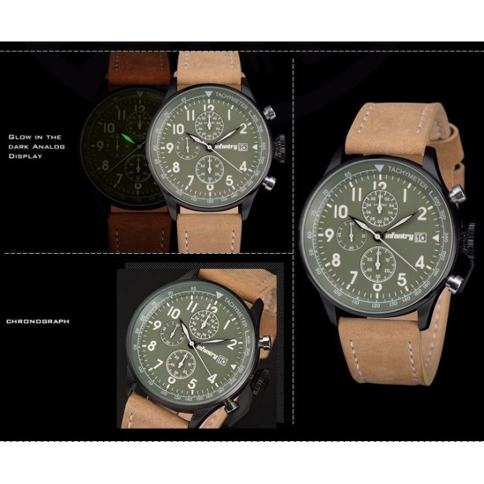 【Infantry】二戰復古系列腕錶-經典三眼款 / 叢林綠|手錶|軍錶|男錶