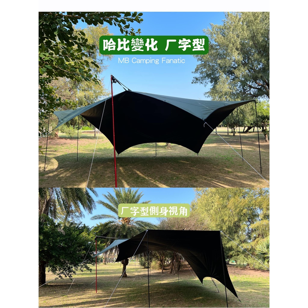 MB露營狂 哈比帳天幕 / 軍綠色-黑膠版【露營狼】【露營生活好物網】
