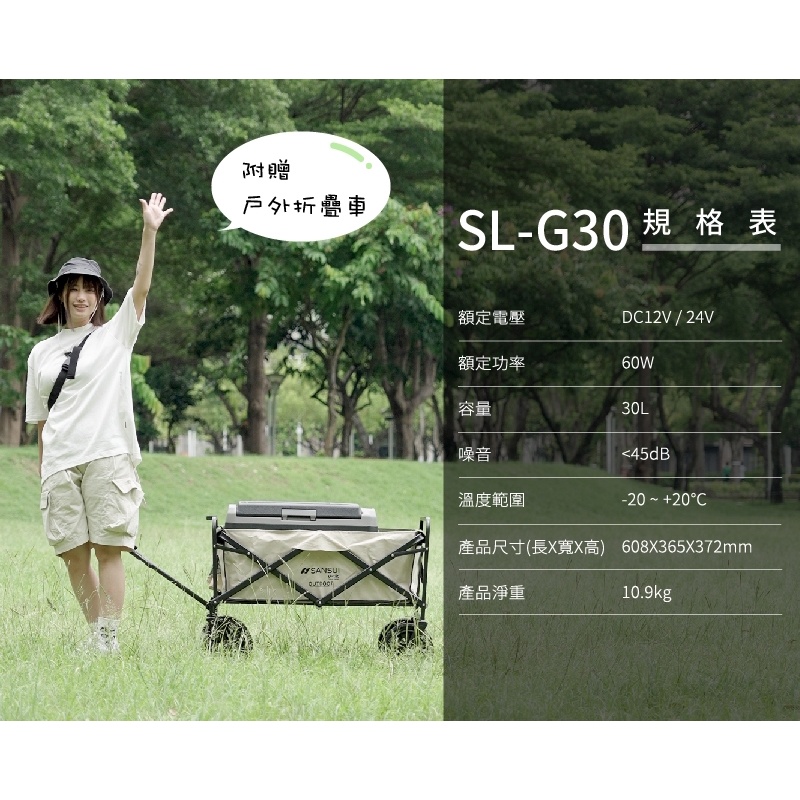 SANSUI 山水 SG-30 30L 行動冰箱 (限量送戶外手拉車)【露營狼】【露營生活好物網】