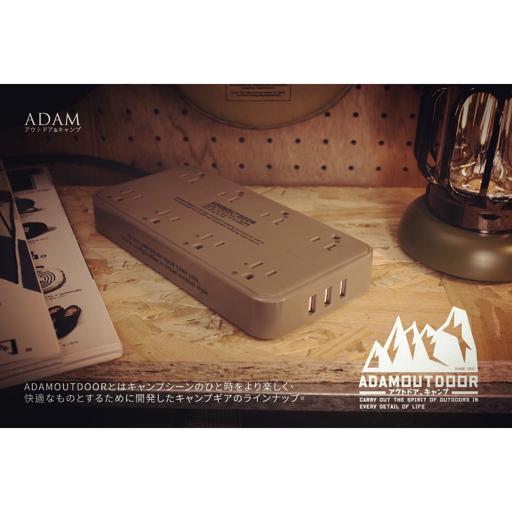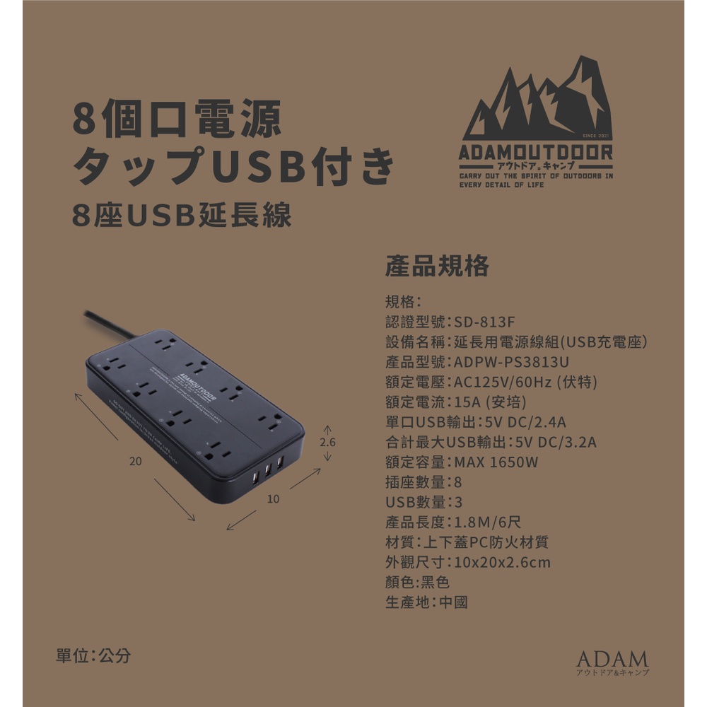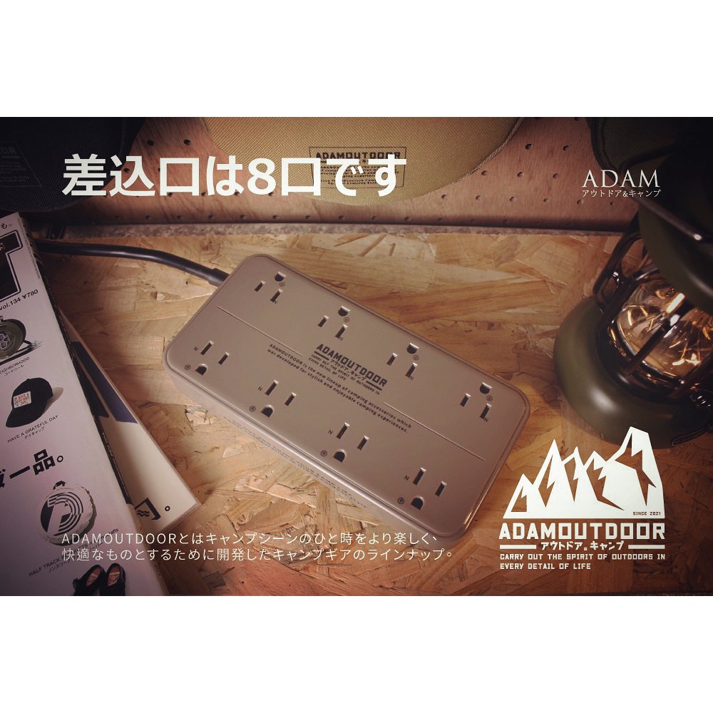 ADAMOUTDOOR 8座3孔 USB延長線 1.8M【露營狼】【露營生活好物網】