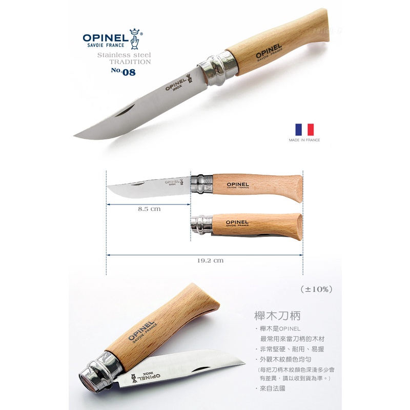 OPINEL 櫸木柄-No.08 不鏽鋼折刀(新皮套組合) #001089【露營狼】【露營生活好物網】