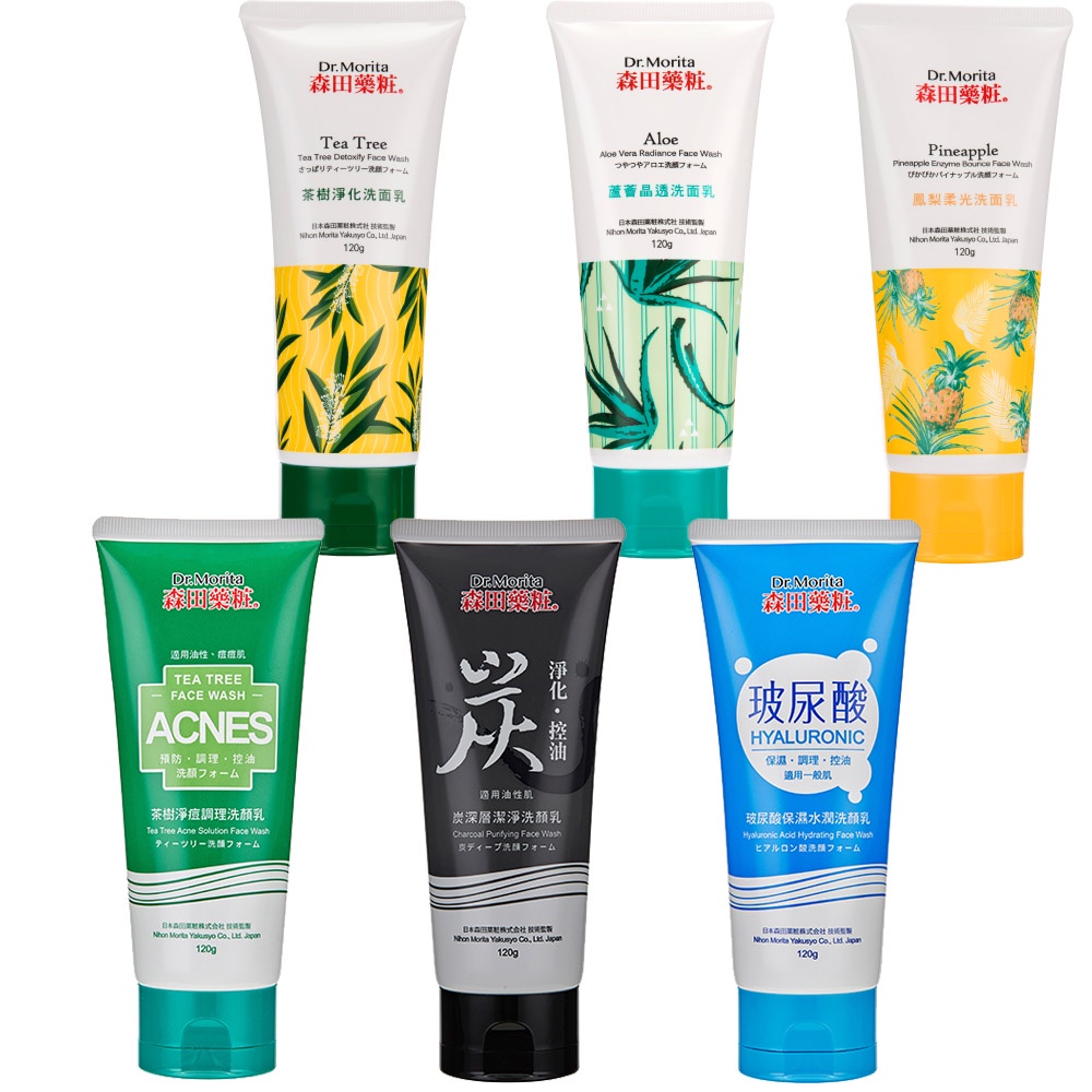 森田藥妝洗面乳-玻尿酸保濕/茶樹淨痘/炭深層潔淨/鳳梨柔光/茶樹淨化/蘆薈晶透