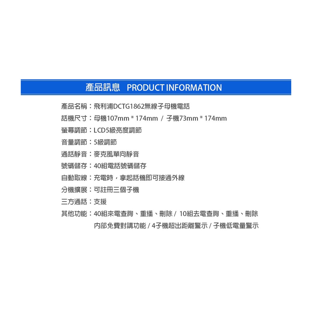 【Philips 飛利浦】2.4GHz數位無線電話 DCTG1862B