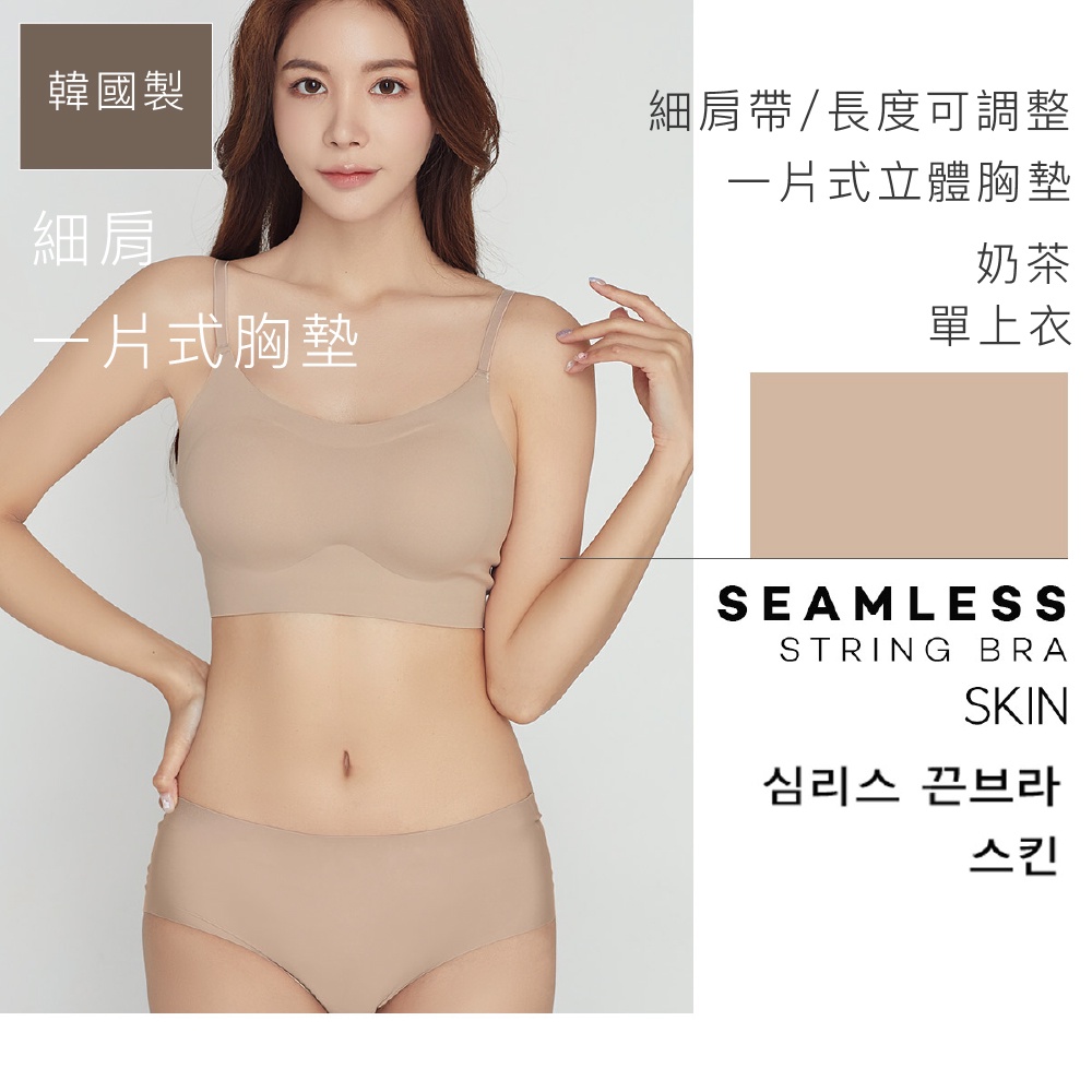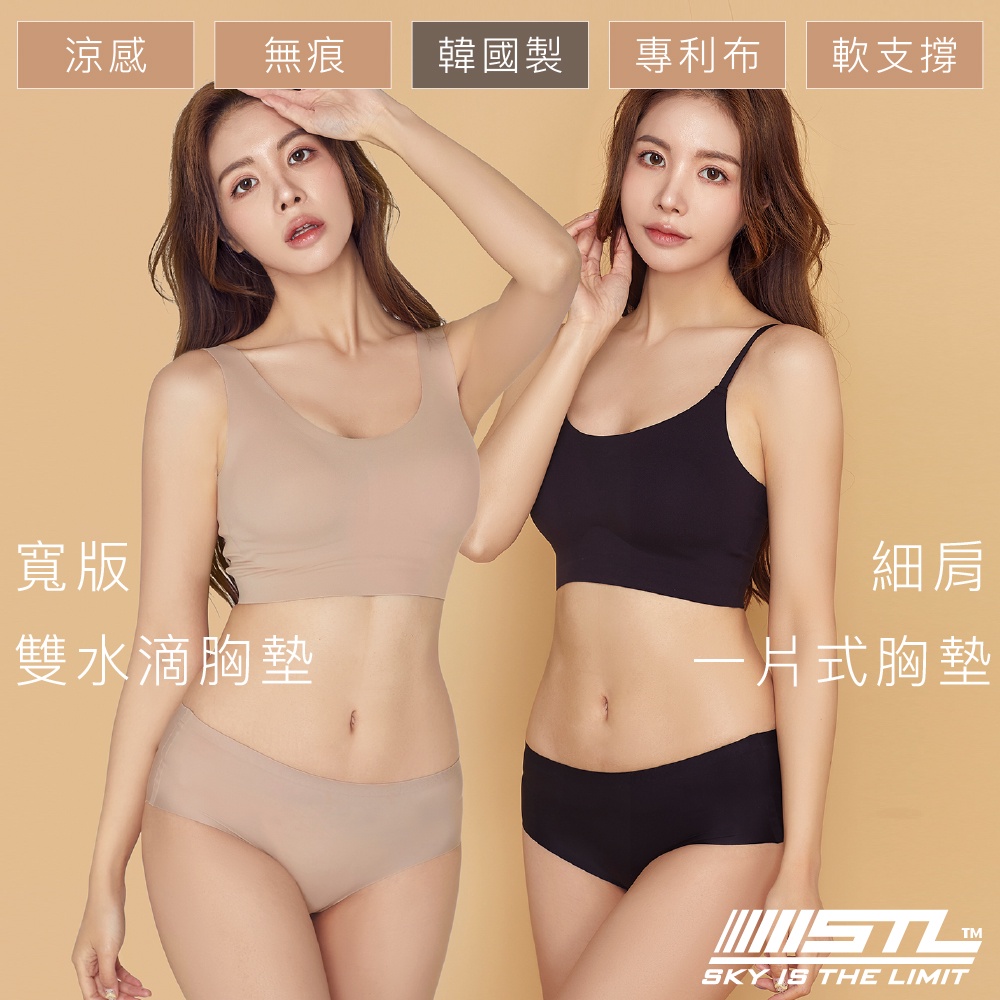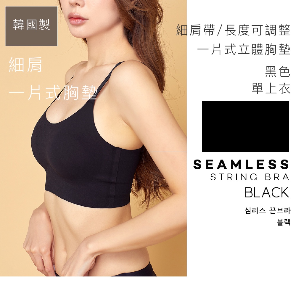 STL|韓國製|現貨|寬 細肩帶|無鋼圈軟支撐|無痕運動內衣|SeamlessStringBraTop|黑 奶茶色