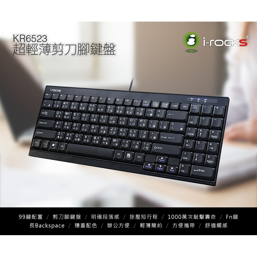 irocks KR6523超薄迷你剪刀腳有線鍵盤