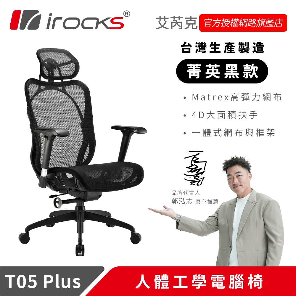 irocks T05 Plus 人體工學 辦公椅 電腦椅 網椅-菁英黑