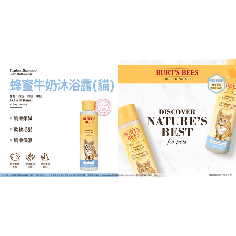 Burt's Bees 天然肌蜜 沐浴露 10oz ( 寵物 貓 小貓 沐浴乳 沐浴精 洗毛精 )