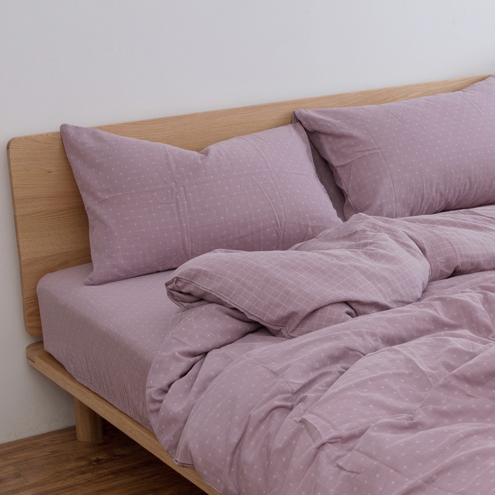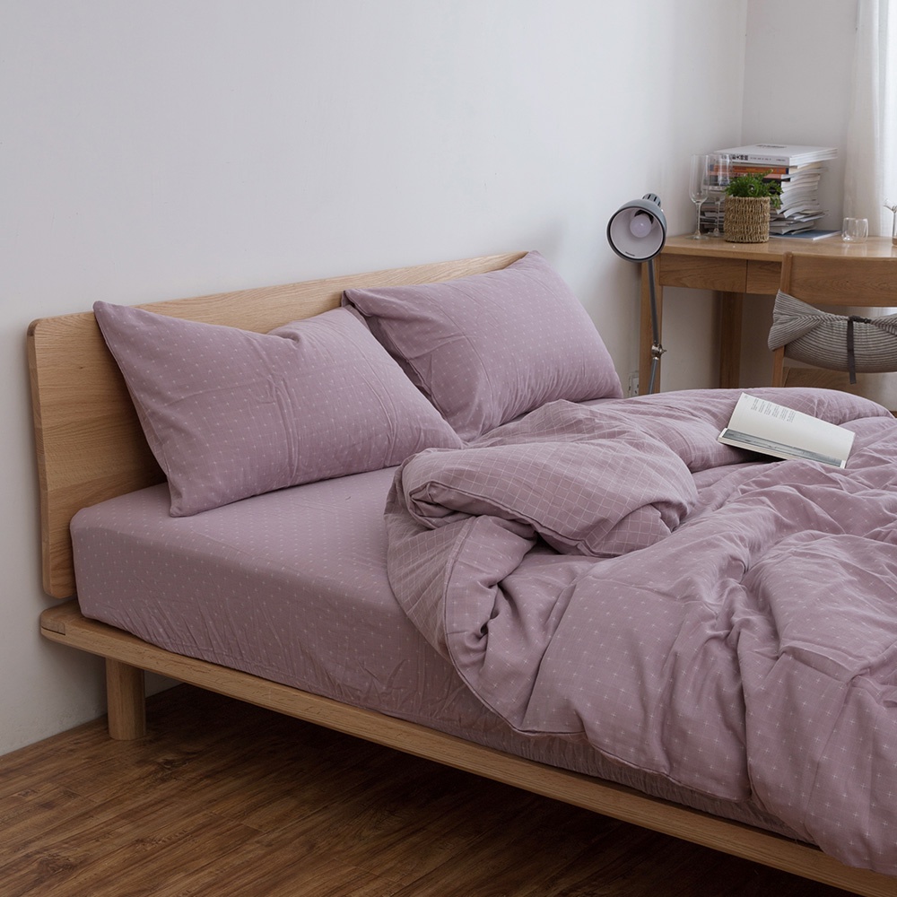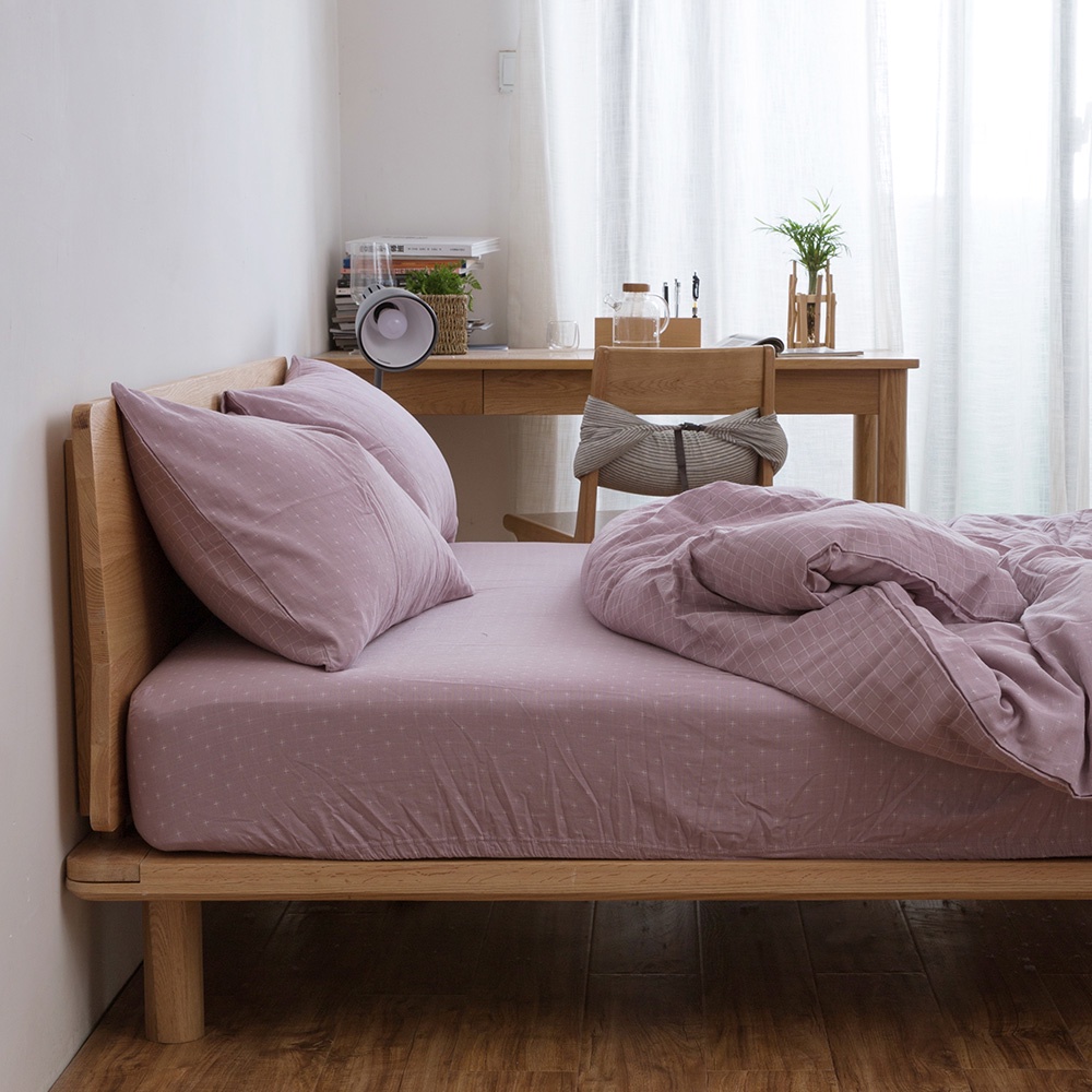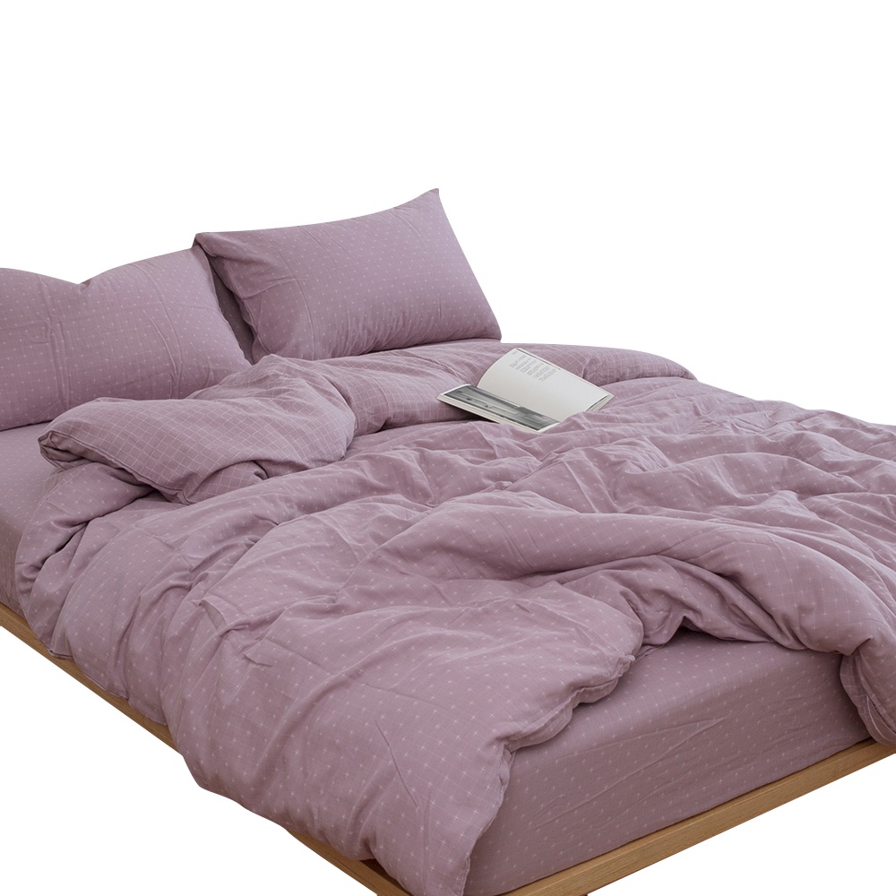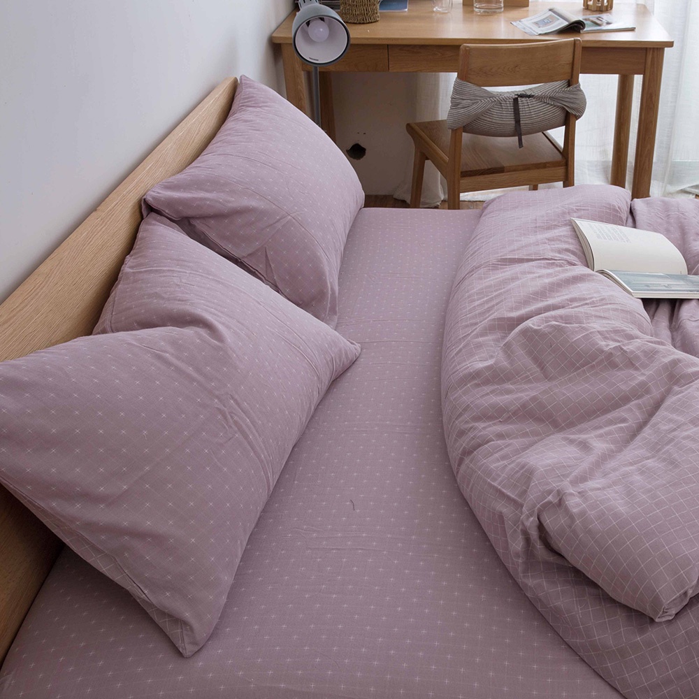 「Belle Vie」色織雙層紗 純棉床包枕套組 薄被套【歐規雙人 / 加大】藕粉色 宜家規格 透氣床包