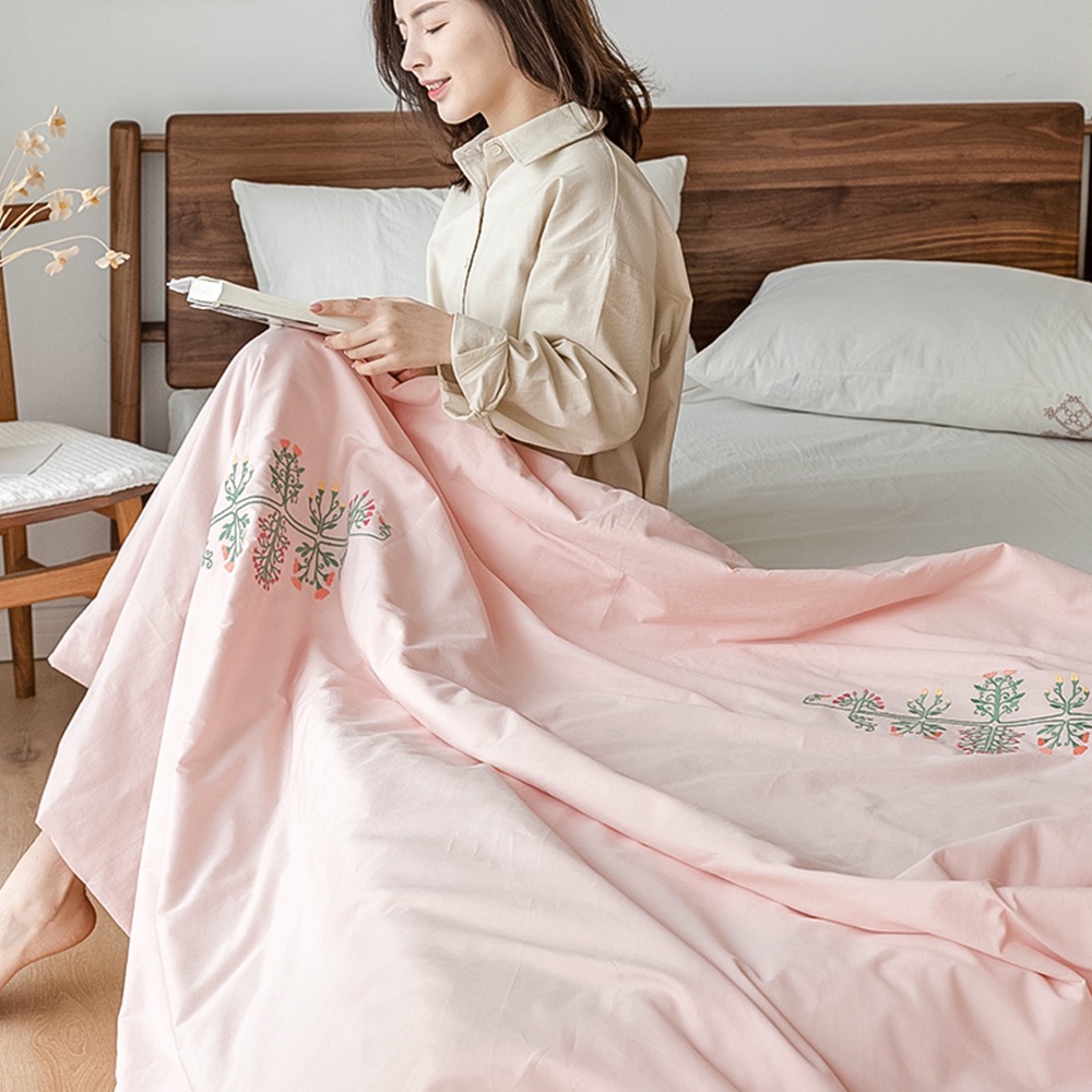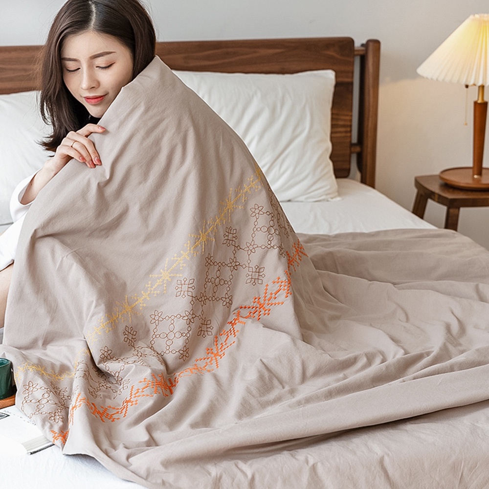 「Belle Vie」刺繡色織水洗純棉涼被 薄被【大尺寸 200x230cm】特大四季被 夏被 午睡被 雙人被