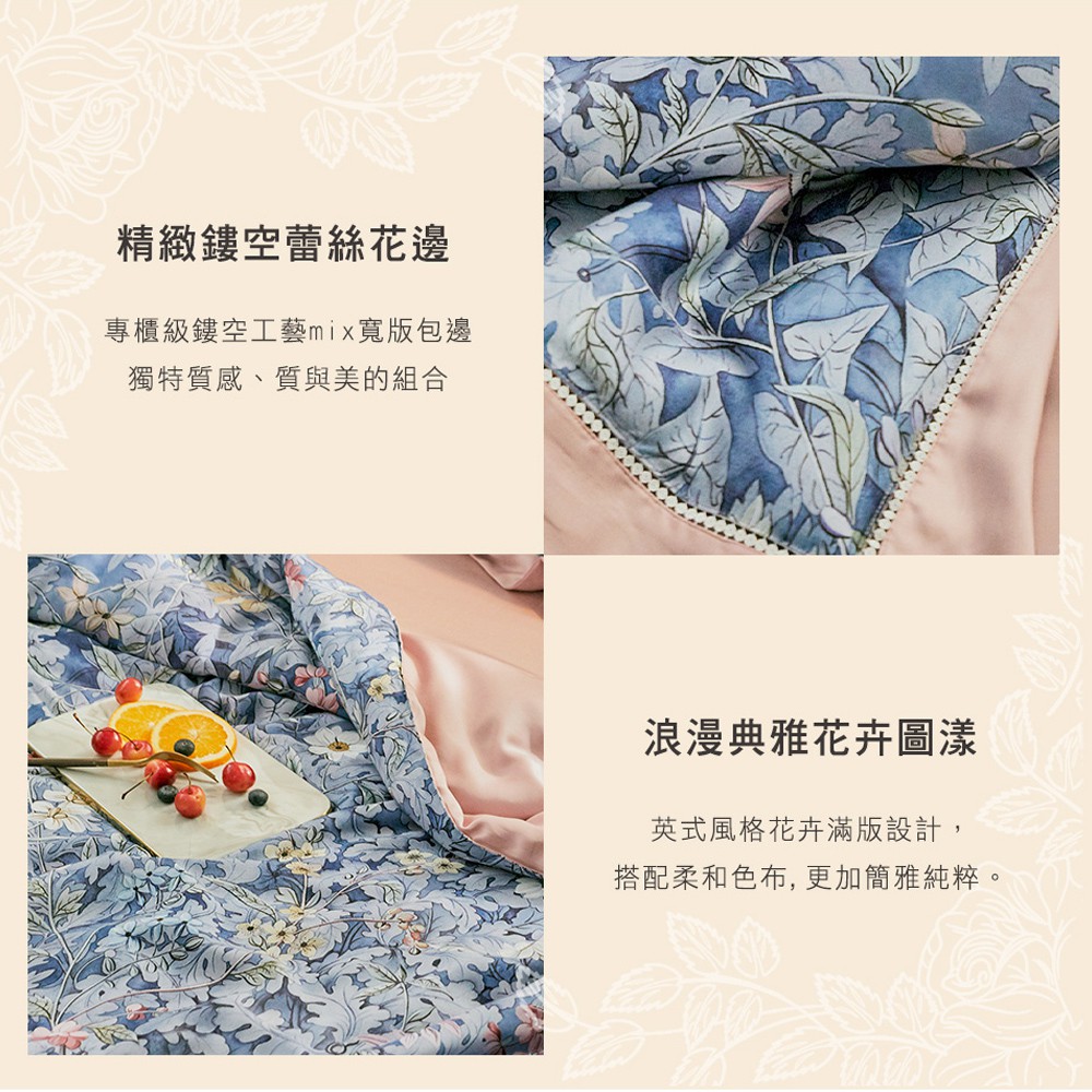 「Belle Vie」60支蘭精純天絲涼被 四季被【大尺寸 - 200X230cm】麥克 英式鏤空包邊 x 浪漫典雅花卉
