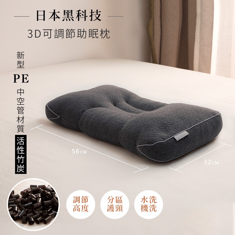 「Belle Vie」日本美學 黑科技 分區調節中空管枕 定位抬頭枕【經典黑】可水洗 可調節高度 護頸枕 SGS檢測通過