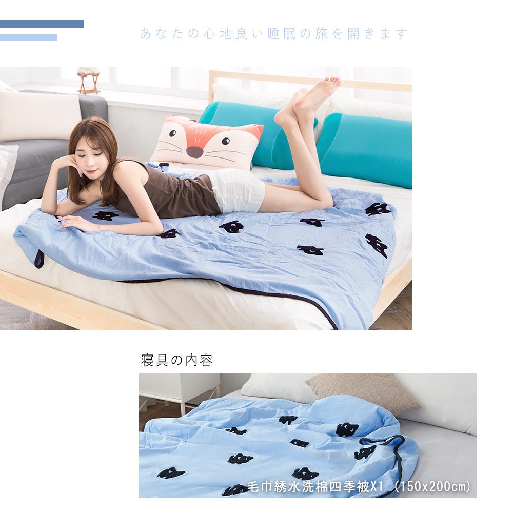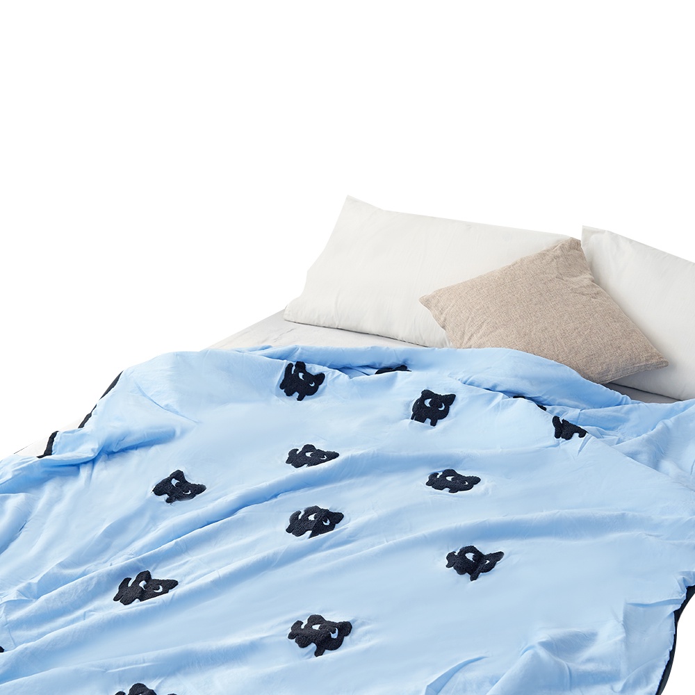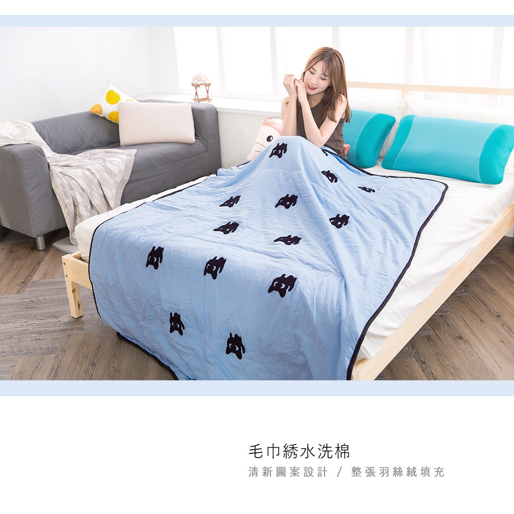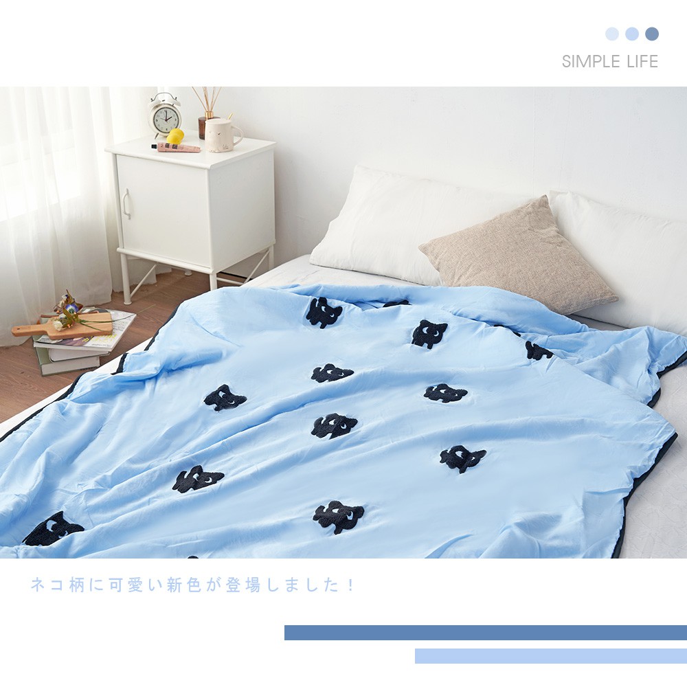 「Belle Vie」韓版立體毛巾繡 水洗舒柔棉涼被【150x200cm - 貓兒藍】自然微皺感 四季被 空調被 冷氣被