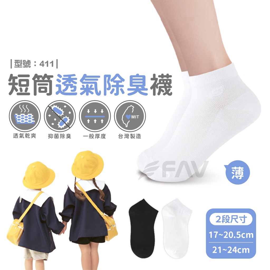 【FAV】除臭透氣短襪【多雙組】網眼透氣/排汗/短筒襪/竹炭/除臭襪/兒童襪/女襪/舒適/台灣製/型號:411