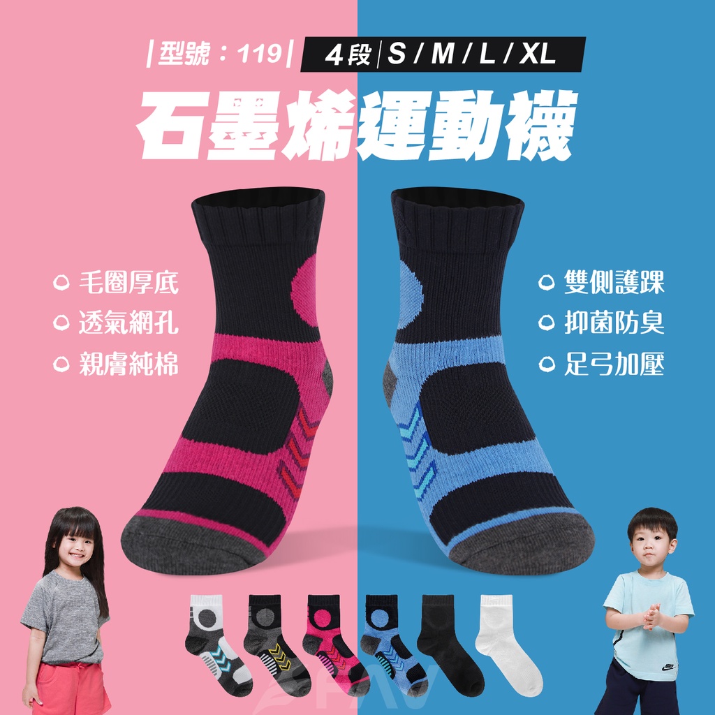 【FAV】童襪 兒童足弓襪【多雙】襪子/厚底運動襪/石墨烯/中筒襪/氣墊襪/網球襪/毛巾厚底/除臭襪/型號:119