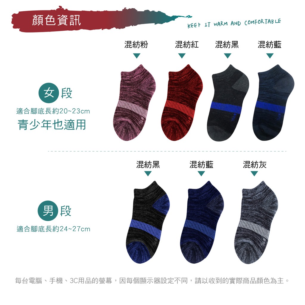 M-混紡紅-同色2雙-20-23cm