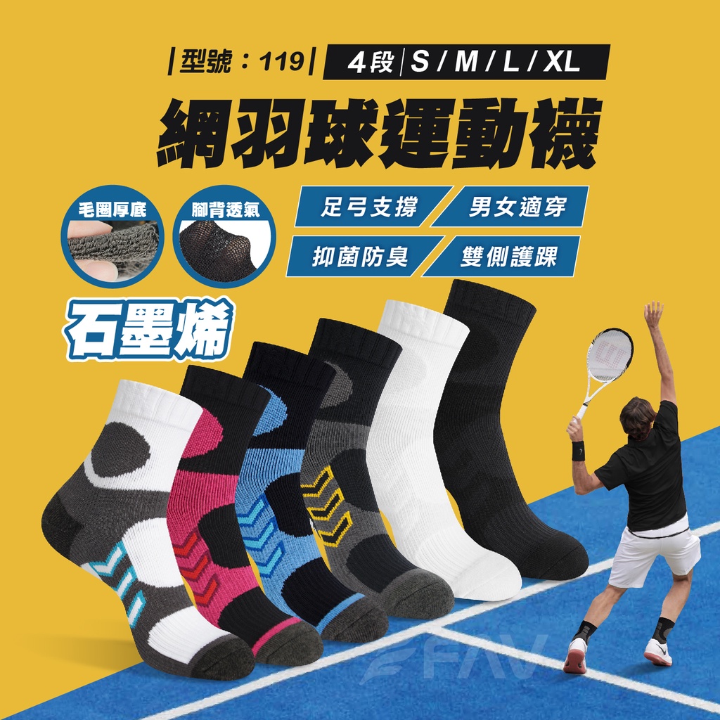 【FAV】運動襪 中筒襪【1雙】男襪/石墨烯/加大尺碼/除臭襪/網球襪/羽球襪/毛巾厚底/襪子/籃球襪/型號:119