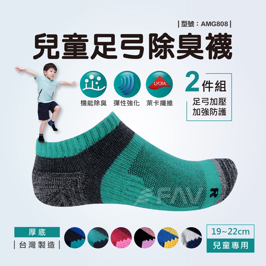 【FAV】足弓除臭襪【同色2雙】兒童運動襪/厚底除臭襪/童襪/足弓襪/踝襪/止滑襪/運動襪/防滑襪/型號:AMG808