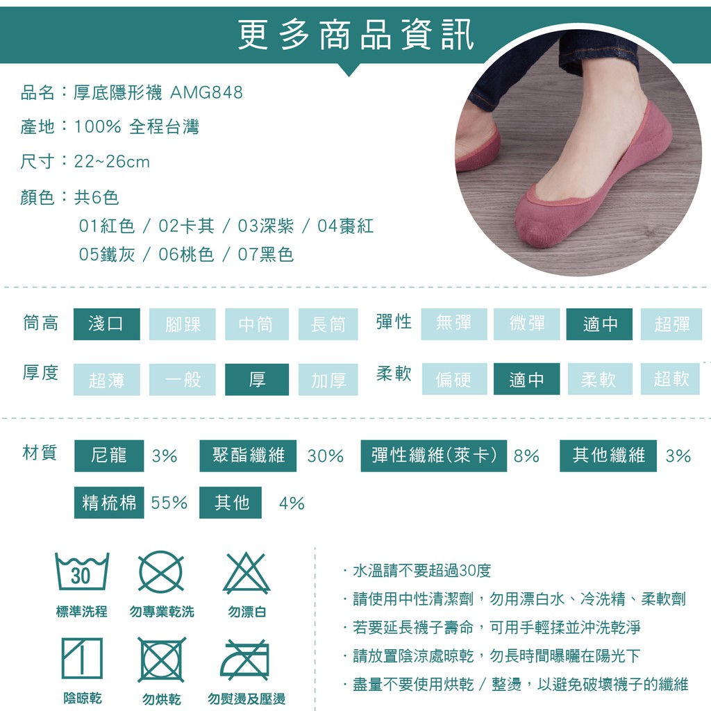 台灣製造 厚底隱形襪【現貨】裸襪/淺口/短襪/襪套/防滑/型號:AMG848【FAV】