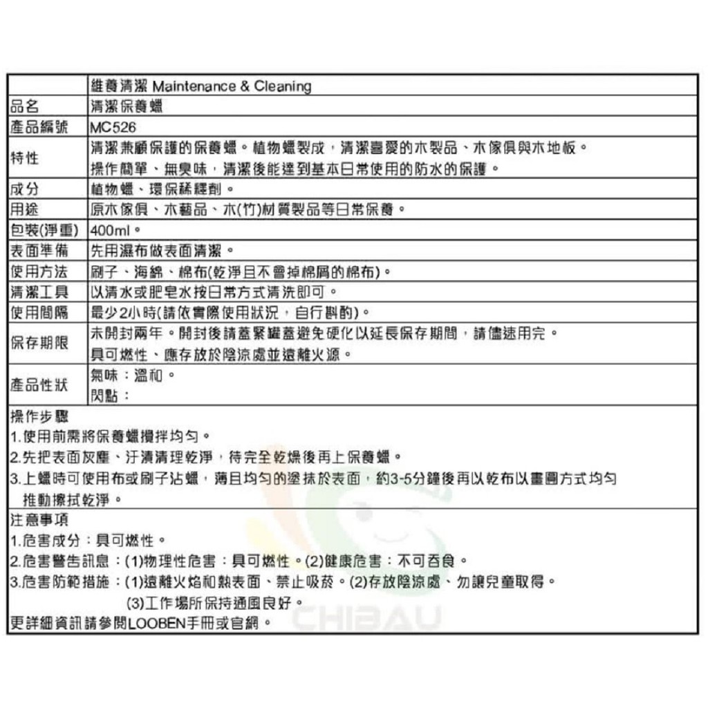 Looben魯班-MC526L 清潔保養蠟(400ml)